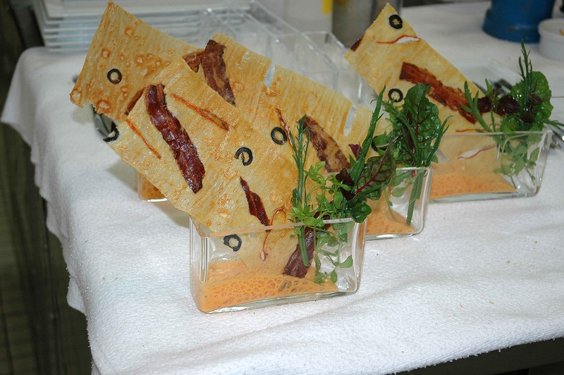 Caramel de tomate, sorbet yaourt et coco râpée, jus de sangria réduit