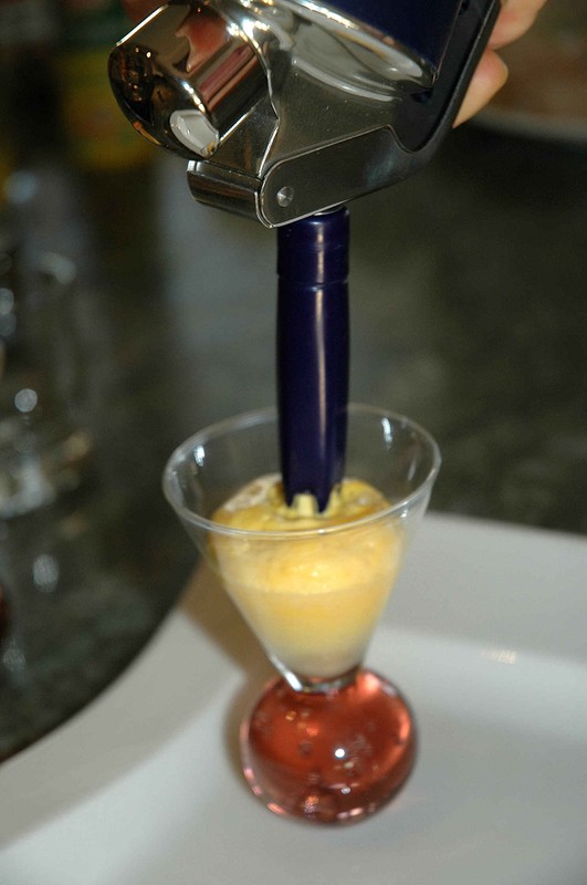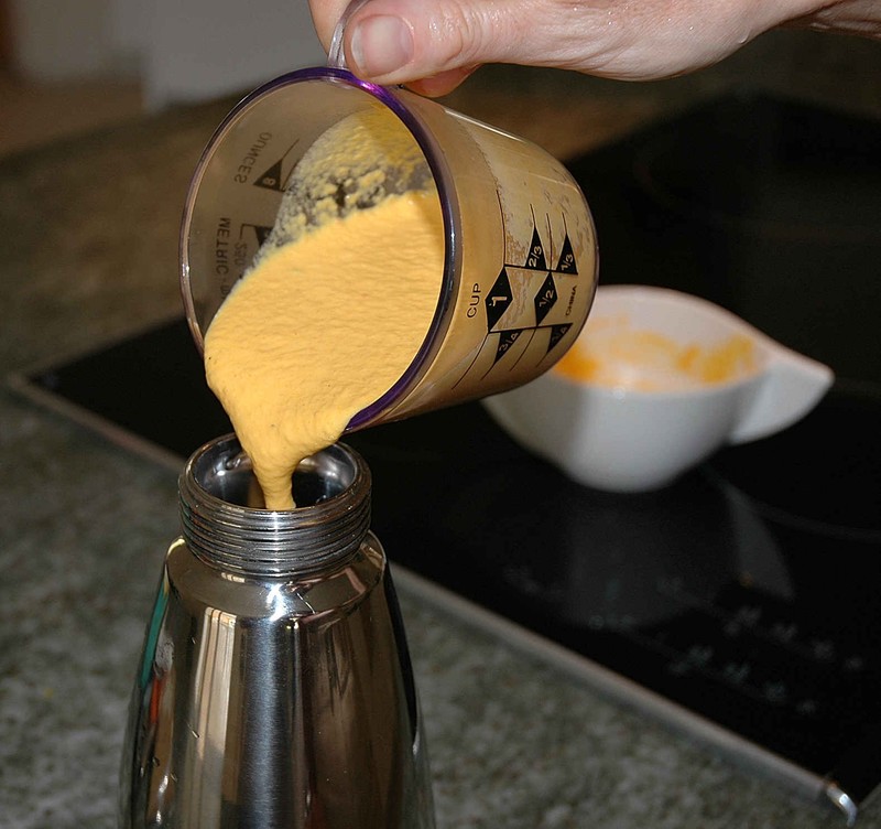 J’ai tenté hier de faire une recette de mon livre spécial chantilly & espuma au siphon, des verrines de carottes et son espuma aux carottes et au cumin ………. (il y avait de la gélatine dans la recette : 3 feuilles ). Mais au moment d’espumiser mes verrines, rien ne sortait du siphon ! A l’intérieur, il y avait une purée super compacte !