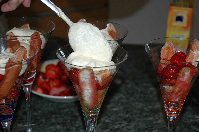 Remplir en alternant fraises et crème mascarpone. Vérifier que la crème coule au fond du verre et qu’il n’y ait pas d’espace vide…. ce serait dommage pour les gourmands!!!