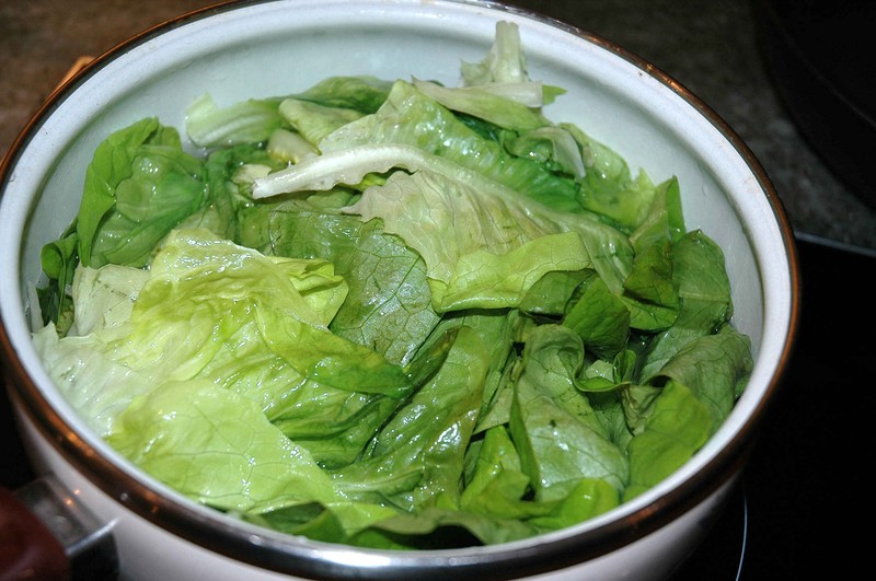 Couper la laitue en gros tronçons et cuire 5 mn dans une casserole d’eau bouillante salée. Egoutter.