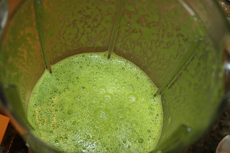 Verser l’infusion passée au tamis dans la poêle et laisser frémir 10 mn. Mixer très finement et assaisonner.