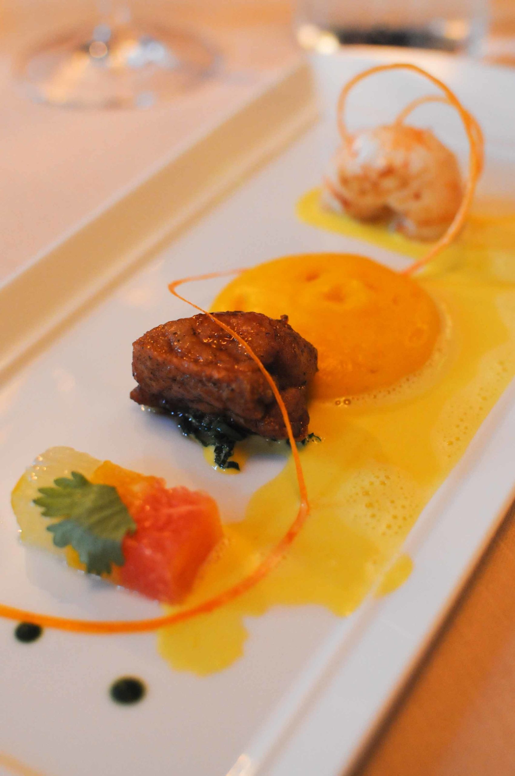 Un plat simple en apparence mais que le Chef a su mettre en valeur en maîtrisant parfaitement cuisson, jus et technique. Des produits nobles et de qualité comme on les aime…
