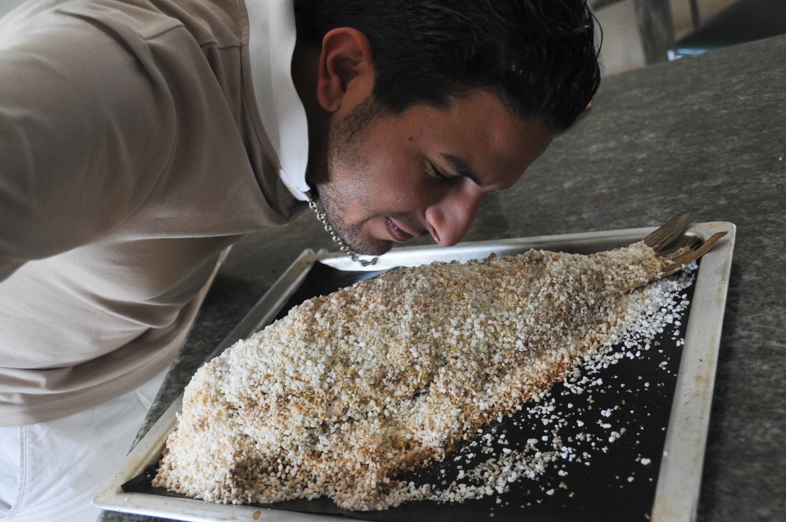 Bar en croûte de sel… avec Akrame comme commis ;-)