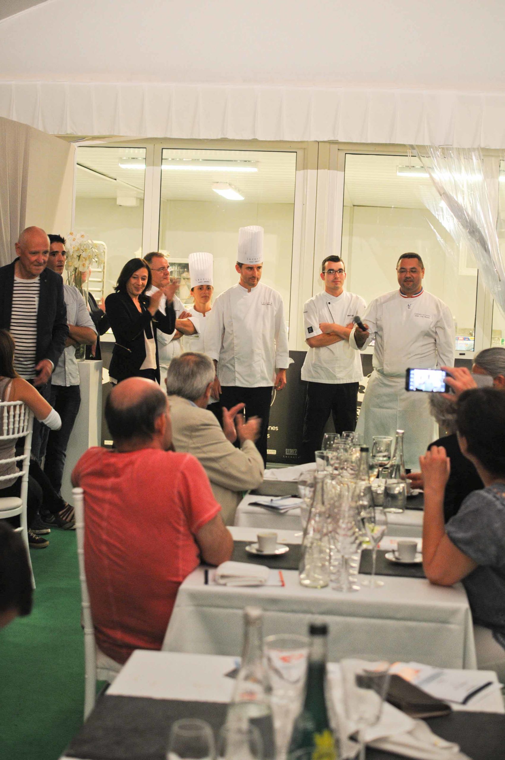 Jean Luc est passé tout au long du repas de table en table pour discuter avec les clients; à la fin, il n’a pas coupé au petit discours du Chef 🙂