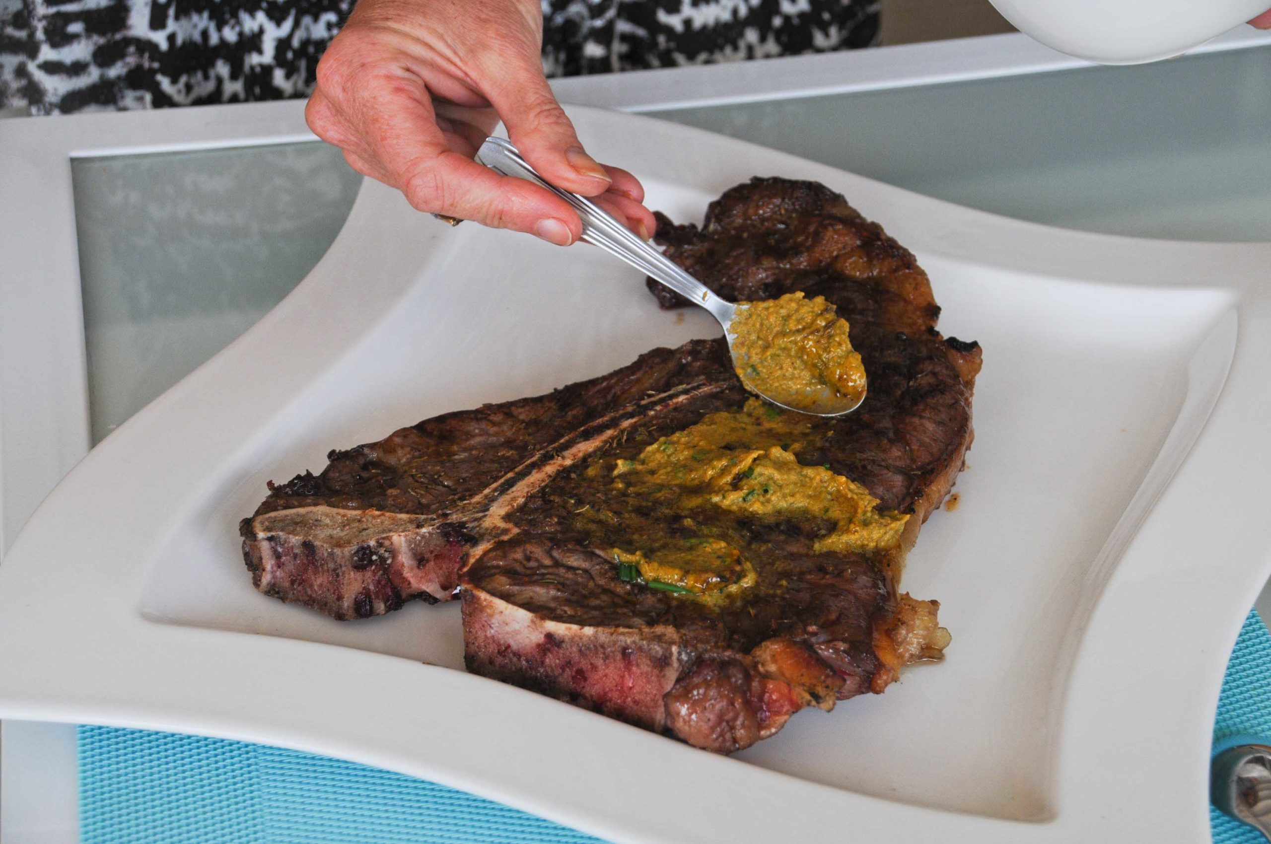 T-bone ou côte de boeuf au BBQ, beurre aux anchois façon « Café de Paris »