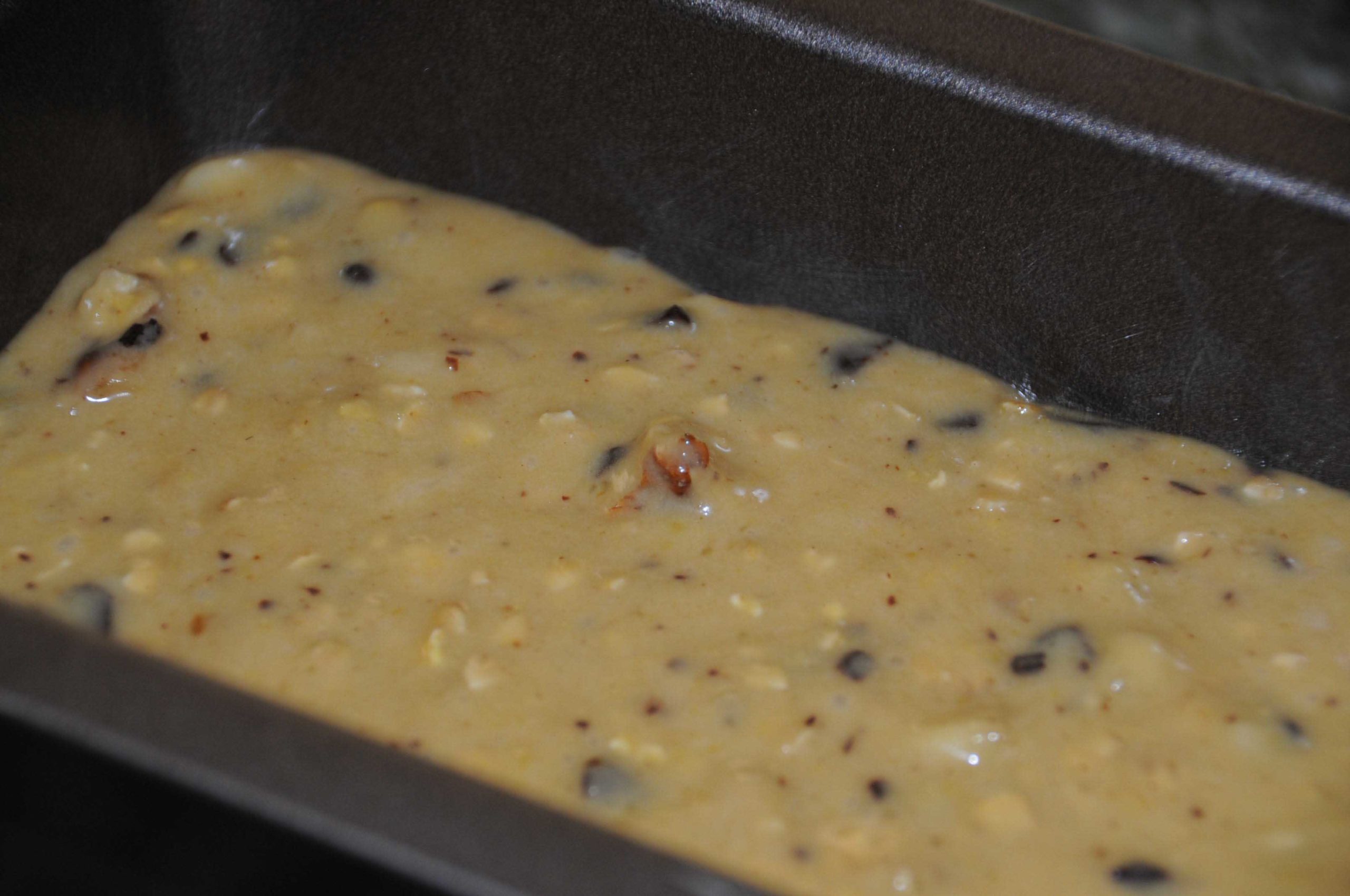 Graisser un moule à cake, verser la préparation et enfourner 55 minutes à 180 °C.