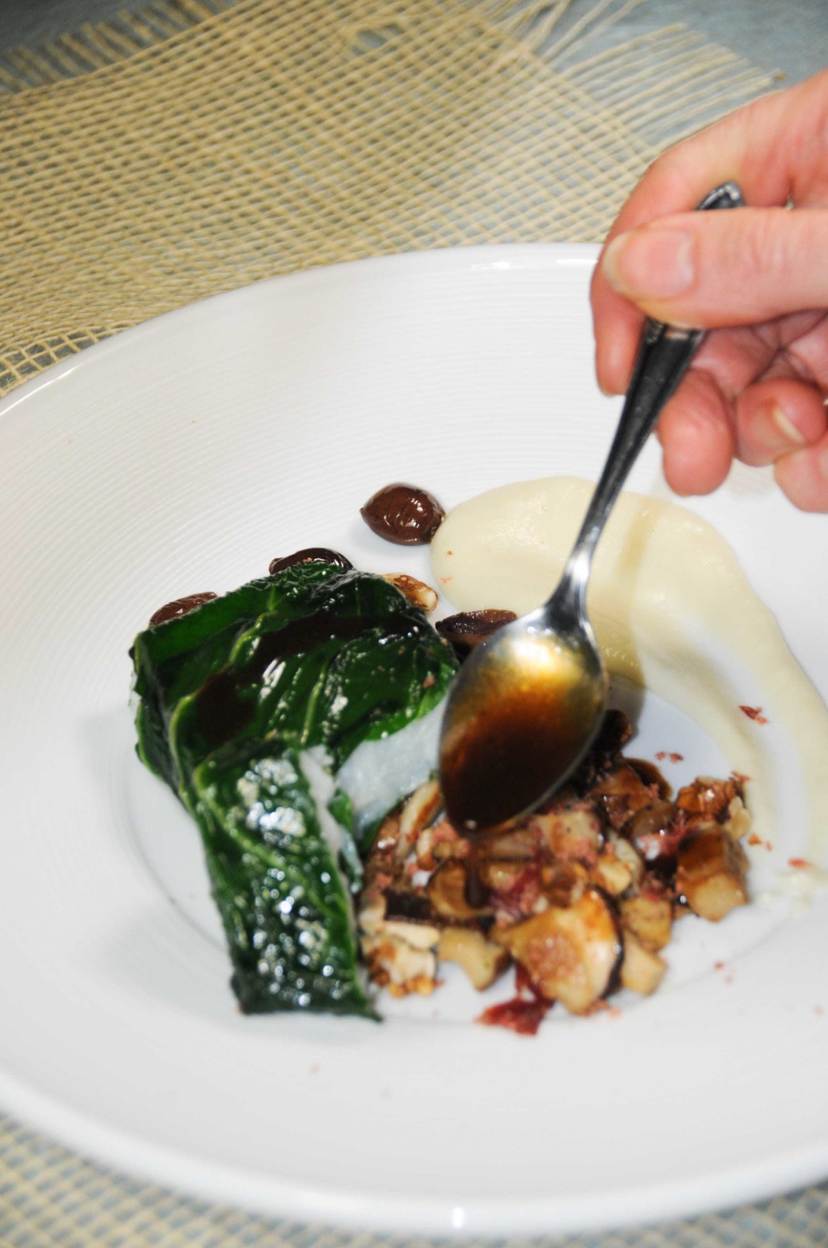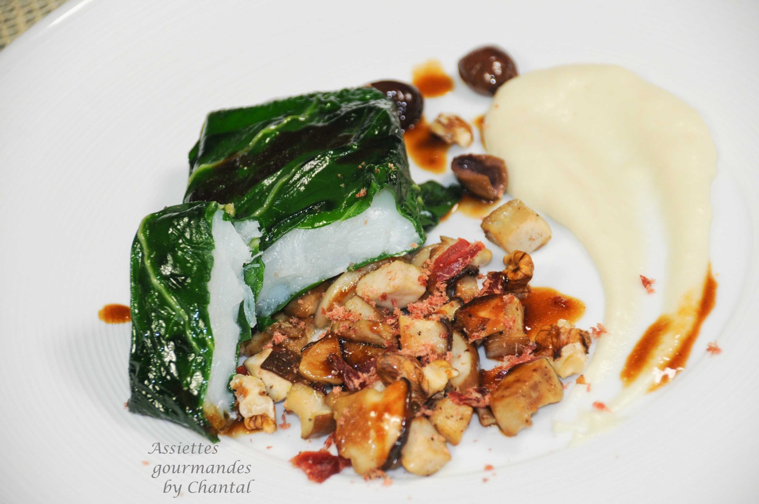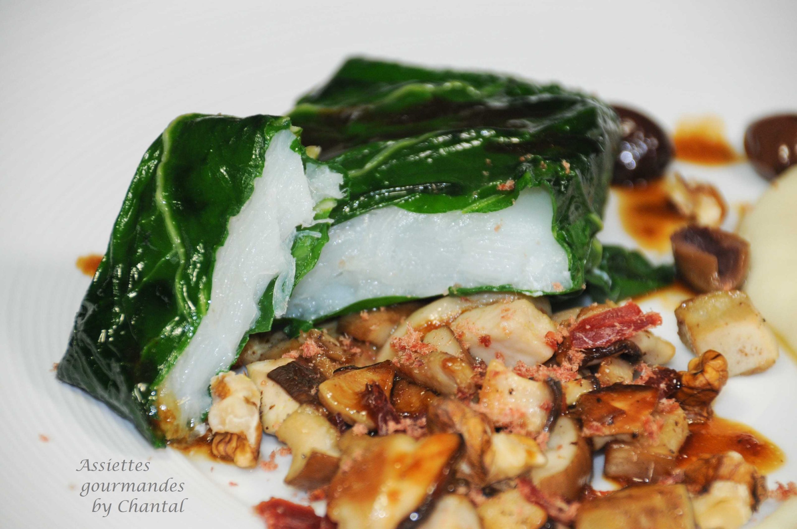 Cabillaud, blette, cèpes, noix, Taggiasches