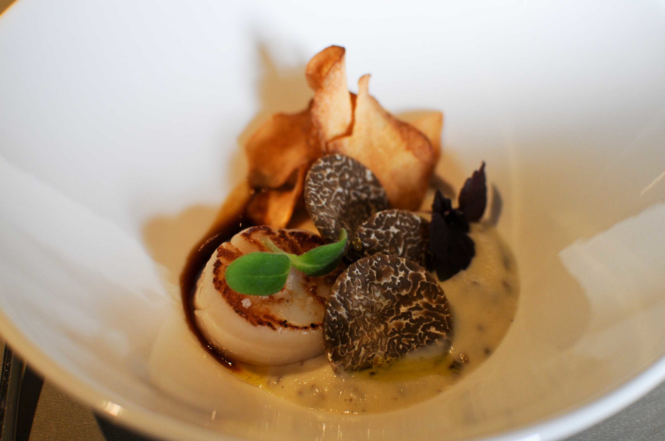 Saint-jacques, topinambour et truffe, jus de volaille corsé