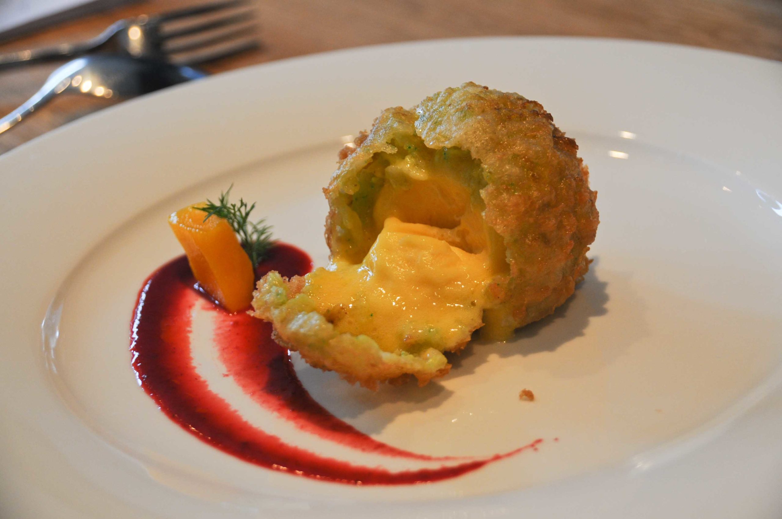 Nous avons eu un assortiment de dim sum au porc et châtaignes d’eau (saveurs cambodgiennes), dim sum au saumon, citronnelle et lait de coco (saveurs asiatiques) et dim sum au canard, butternut et épices (saveurs du terroir)… comme quoi la cuisine asiatique et les produits du sud-ouest font très bon ménage.