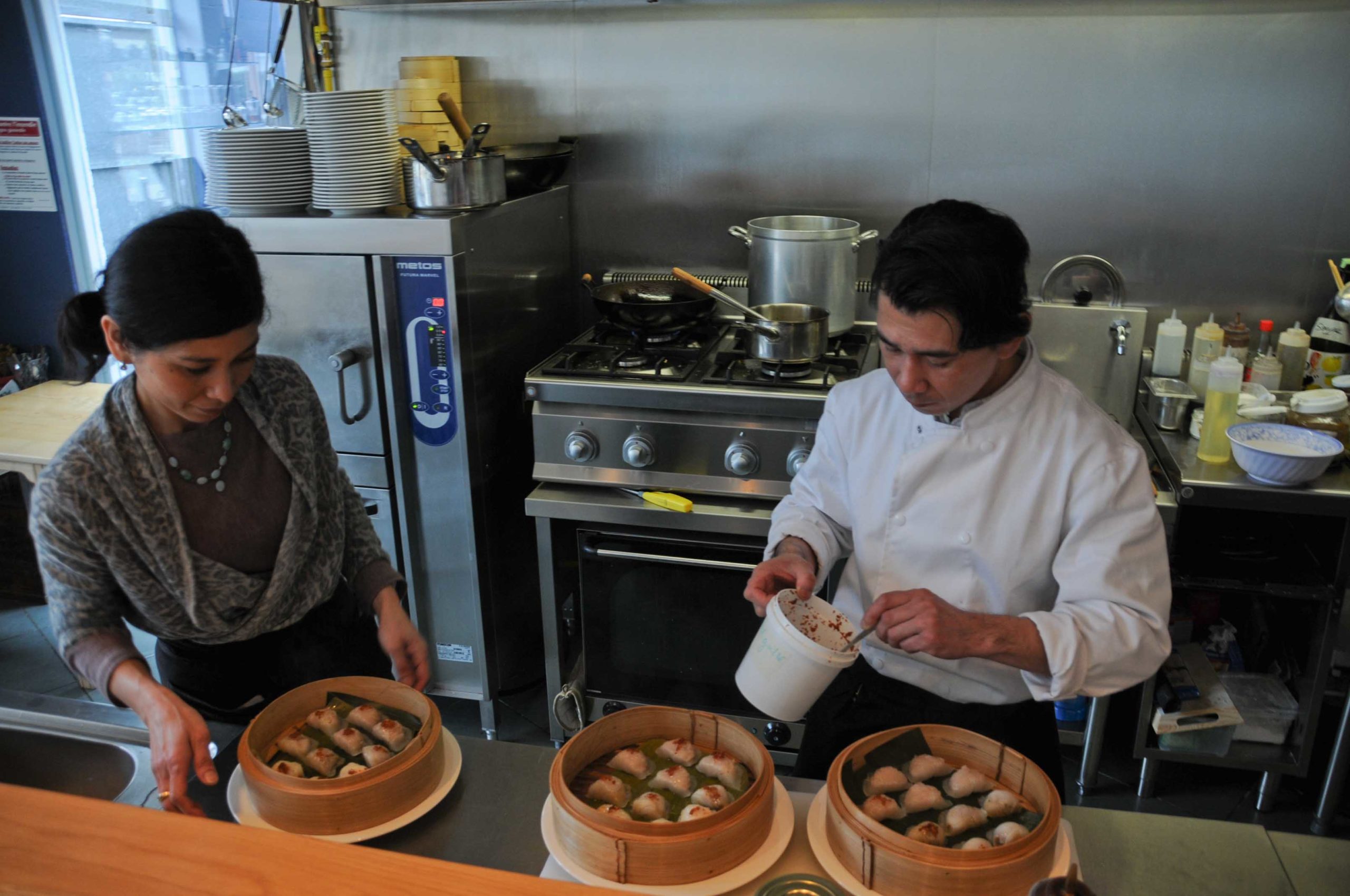 On retrouve bien sur les Dim Sum dans de nombreux restaurants asiatiques, mais ceux là sont exceptionnels! La pâte est très légère, le Chef nous explique qu’au lieu de la farine de riz, il utilise un mélange de farine de froment, fécule de pomme de terre et de maïs pour réaliser la pâte à Dim Sum, c’est ainsi beaucoup moins collant.