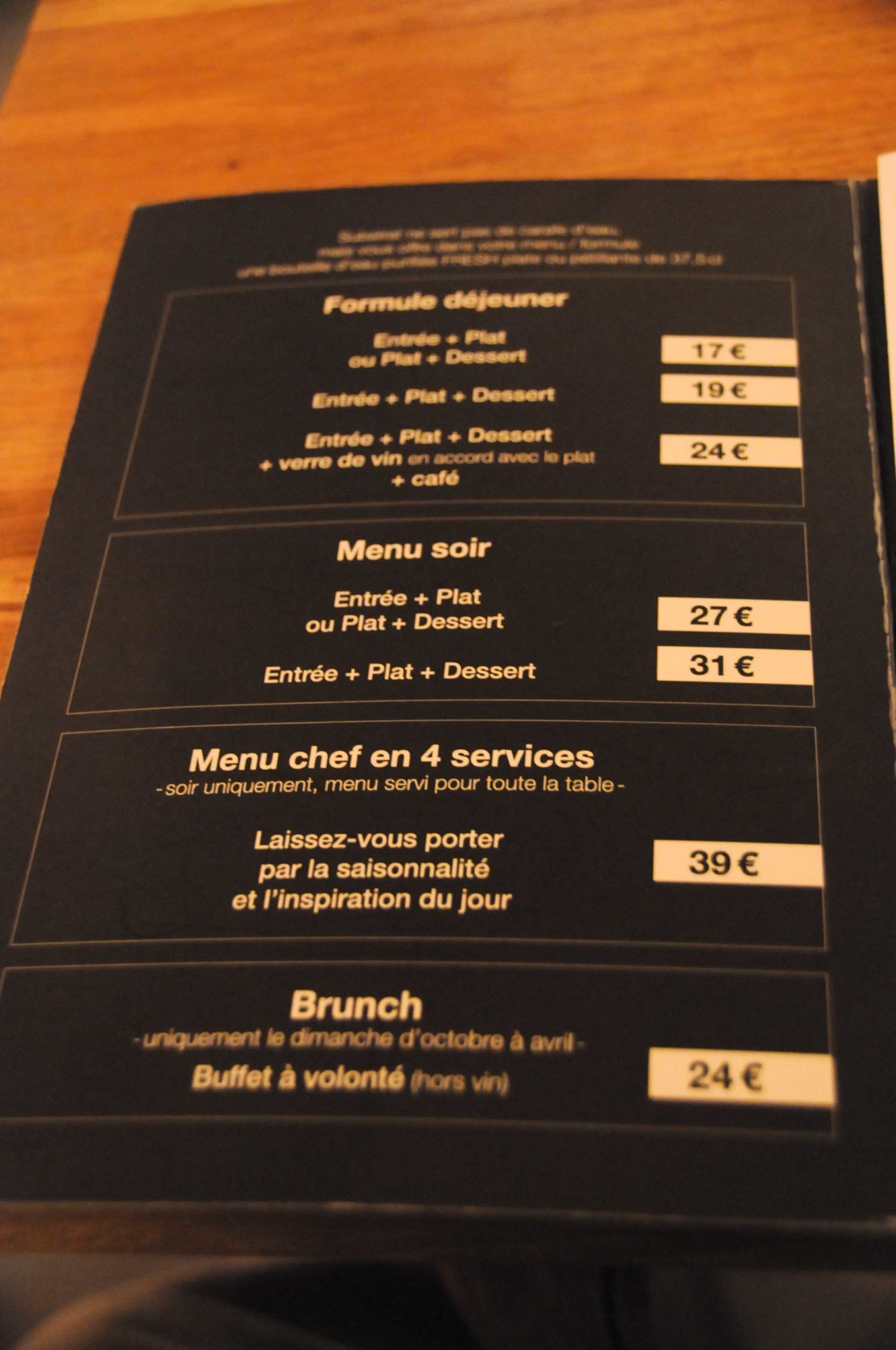 Ici on n’est pas dans un étoilé avec nappes blanches et prix (g)astronomiques, mais plutôt dans le style bistrot/brasserie avec des tables en bois, et où l’on mange très bien pour un prix très sage dans une ambiance décontractée:
