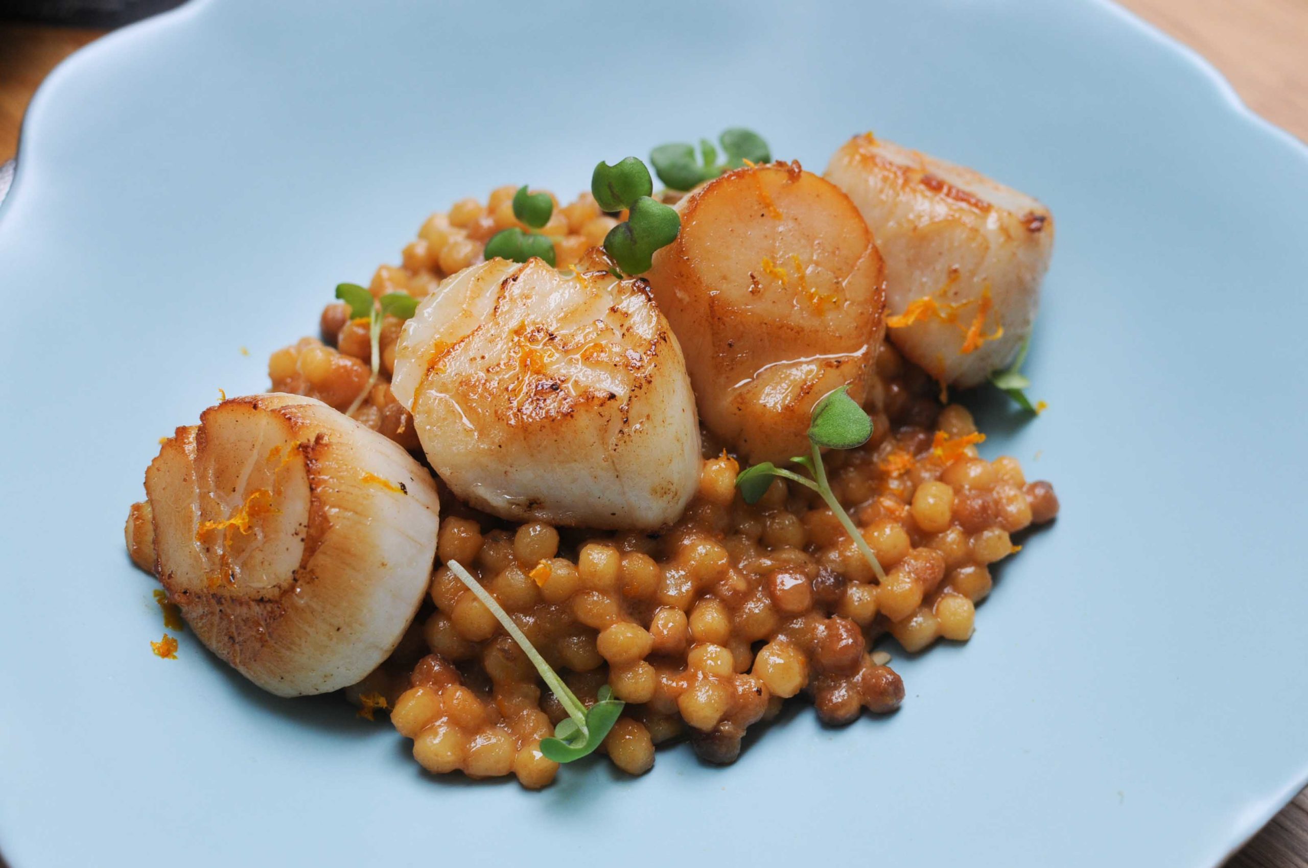 Noix de Saint-Jacques, bisque et fregola