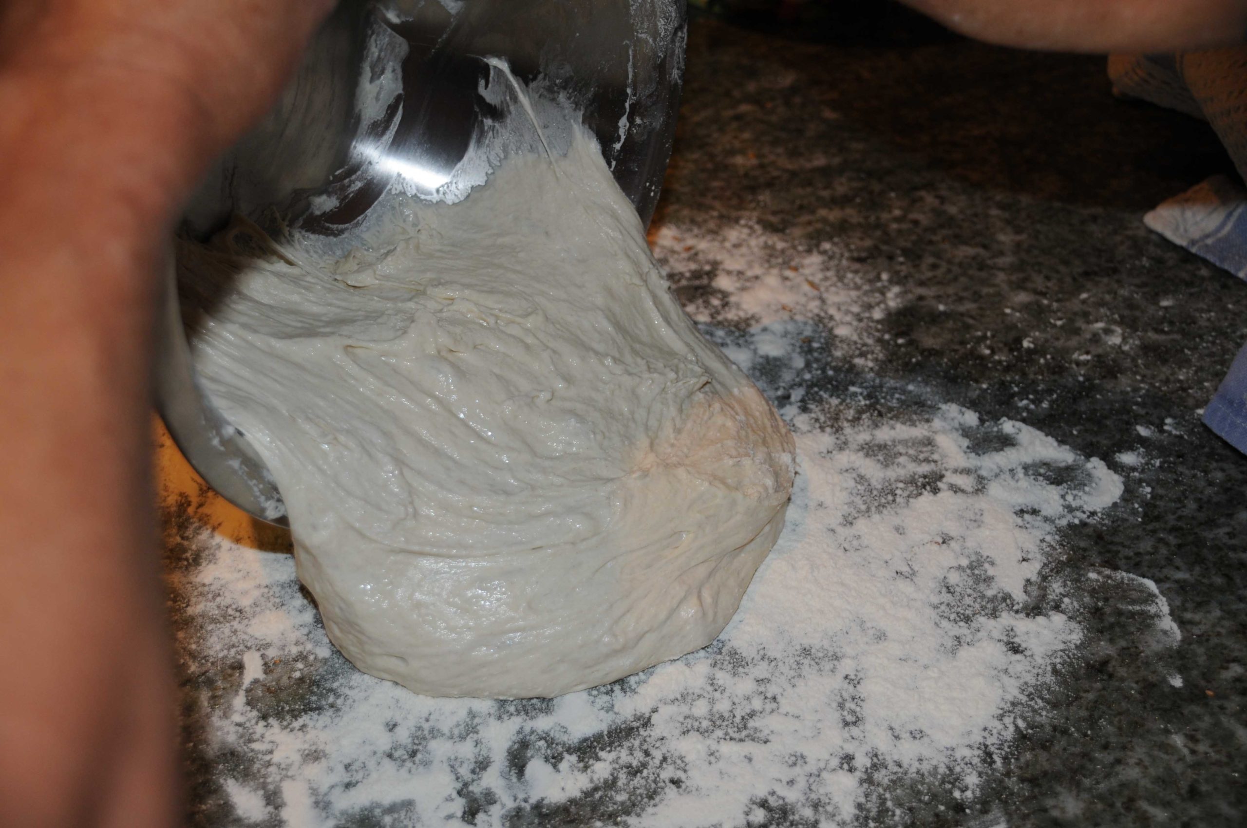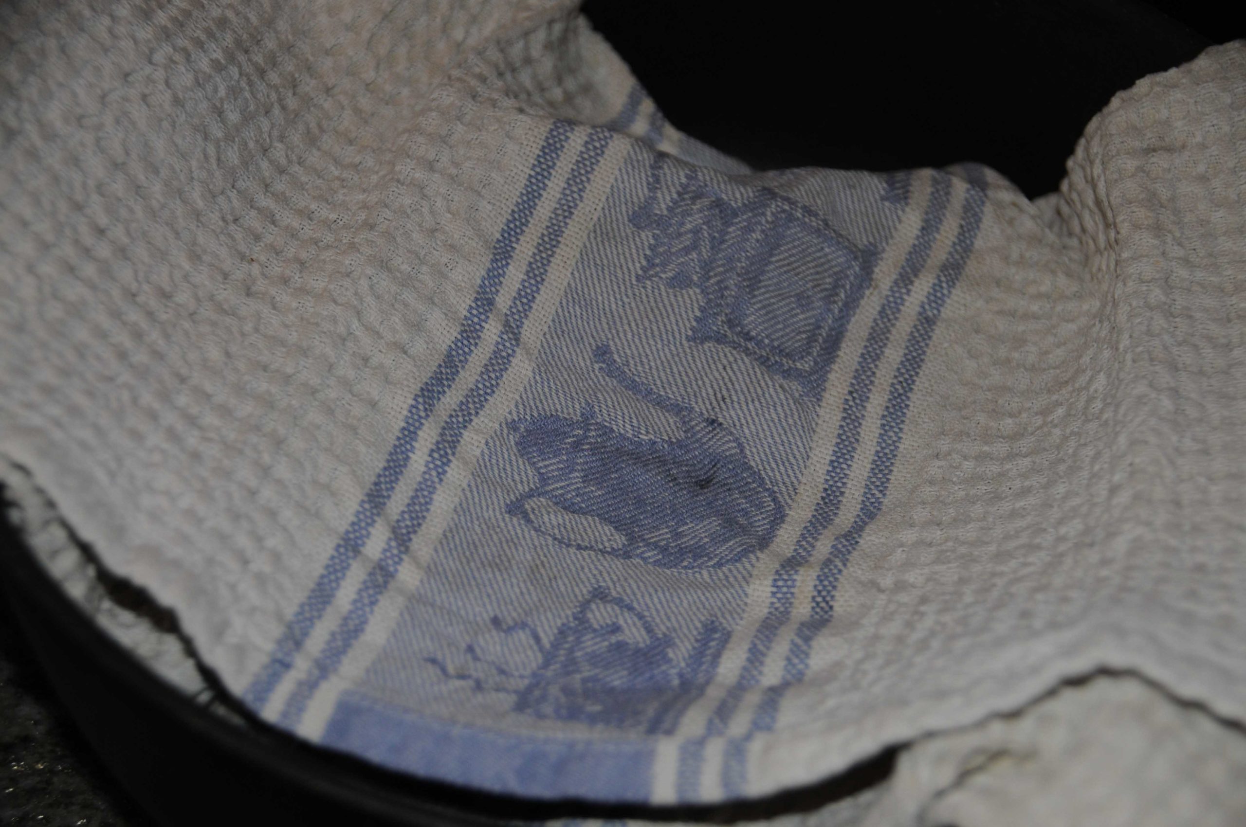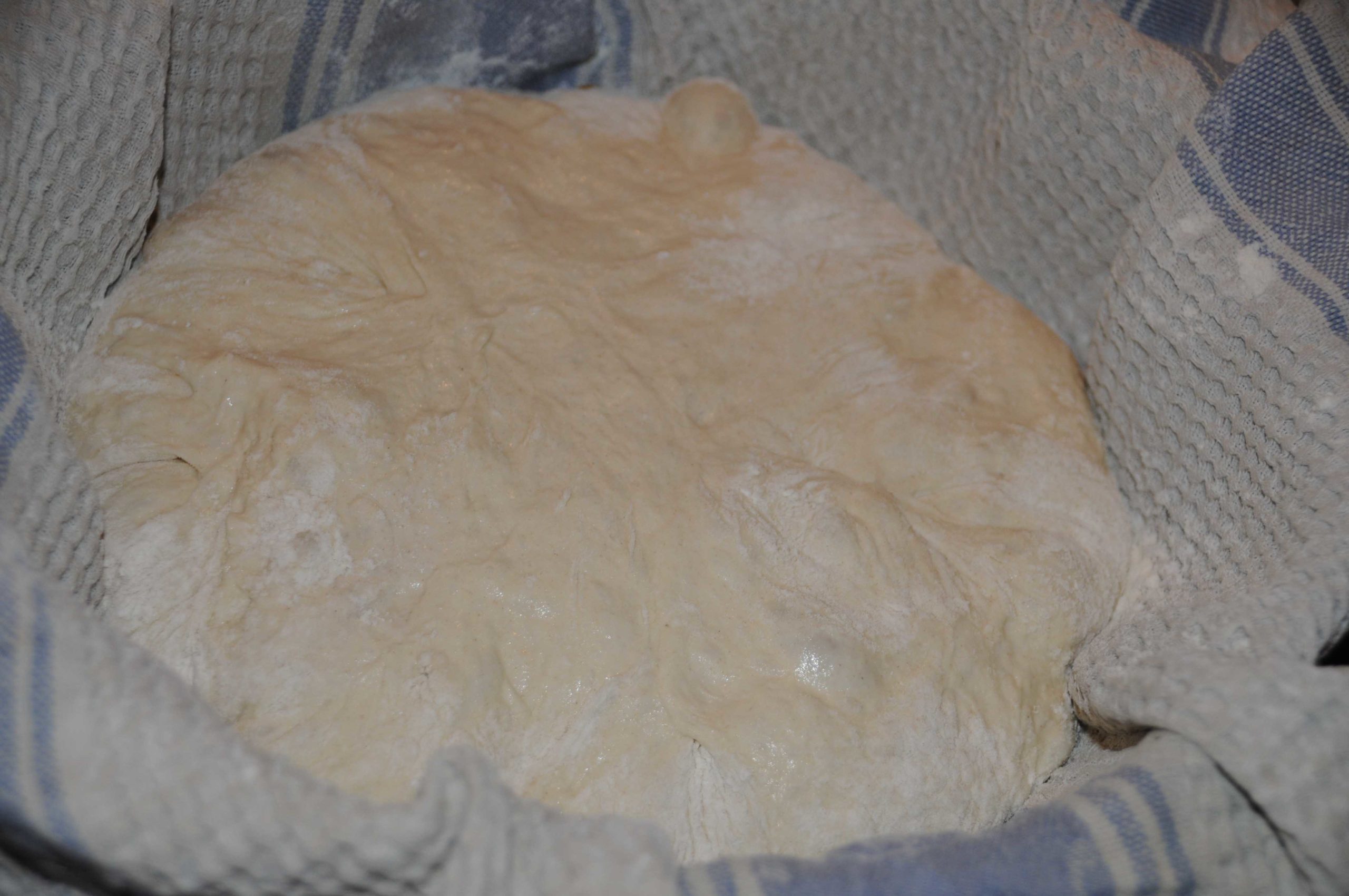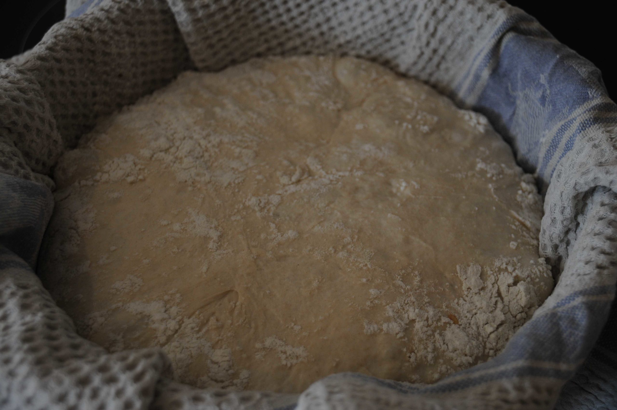 Après la 2de levée, renverser la pâte dans la cocotte très chaude en retirant le torchon dans l’opération.