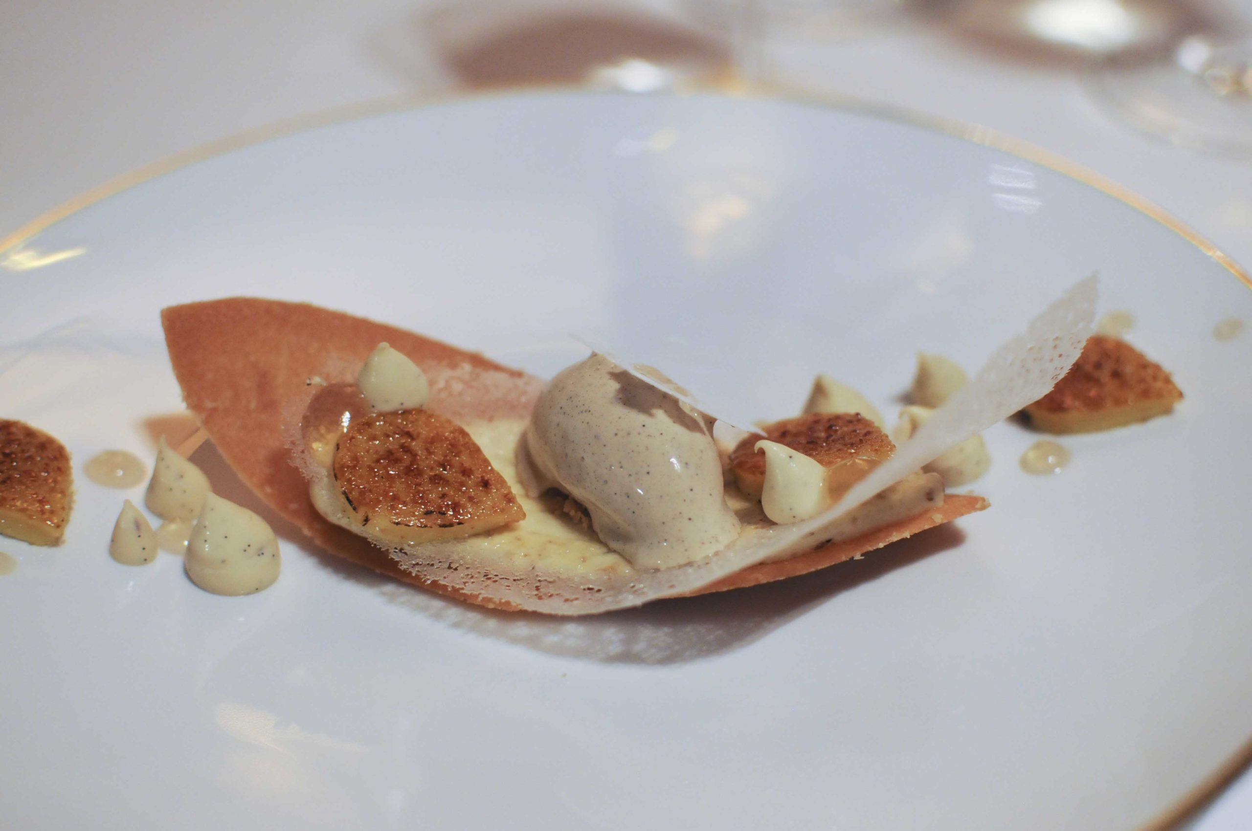 C’est effectivement grâce à cette fine vague croustillante que Arthur Fèvre (à l’époque aux Crayères à Reims) a décroché le titre prestigieux de Champion de France du Dessert. Du caramel mêlé à l’acidité du citron et à un croustillant très élégant et léger, c’est un dessert qui brille par sa délicatesse et le mariage de ses saveurs complémentaires.