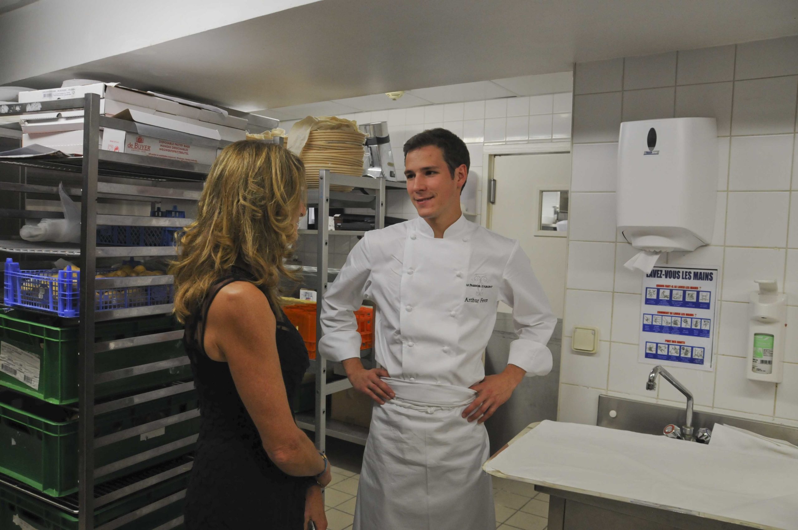 Avant de quitter les cuisines, je fais la connaissance du Chef Pâtissier Arthur Fèvre, ce jeune Chef particulièrement prometteur: