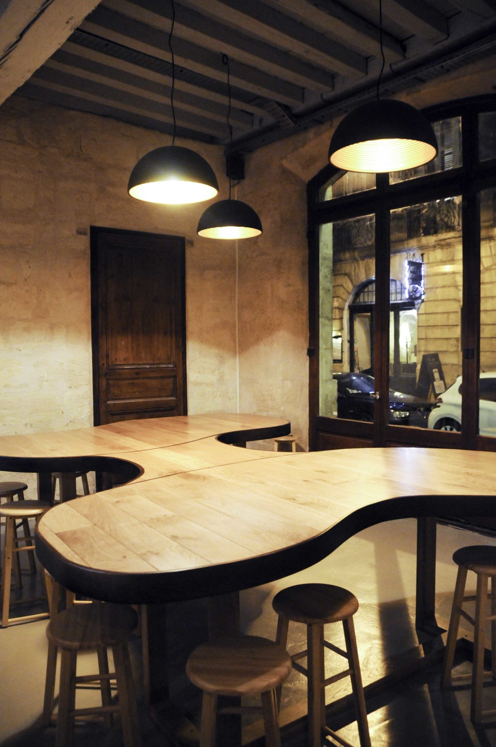 A l’intérieur on retrouve l’esprit du Miles : un grand comptoir qui fait face à la cuisine, et une immense table conviviale en bois pour partager son repas avec d’autres convives, un espace où l’on se sent bien et où l’on peut « espionner » le travail de ces jeunes Chefs.