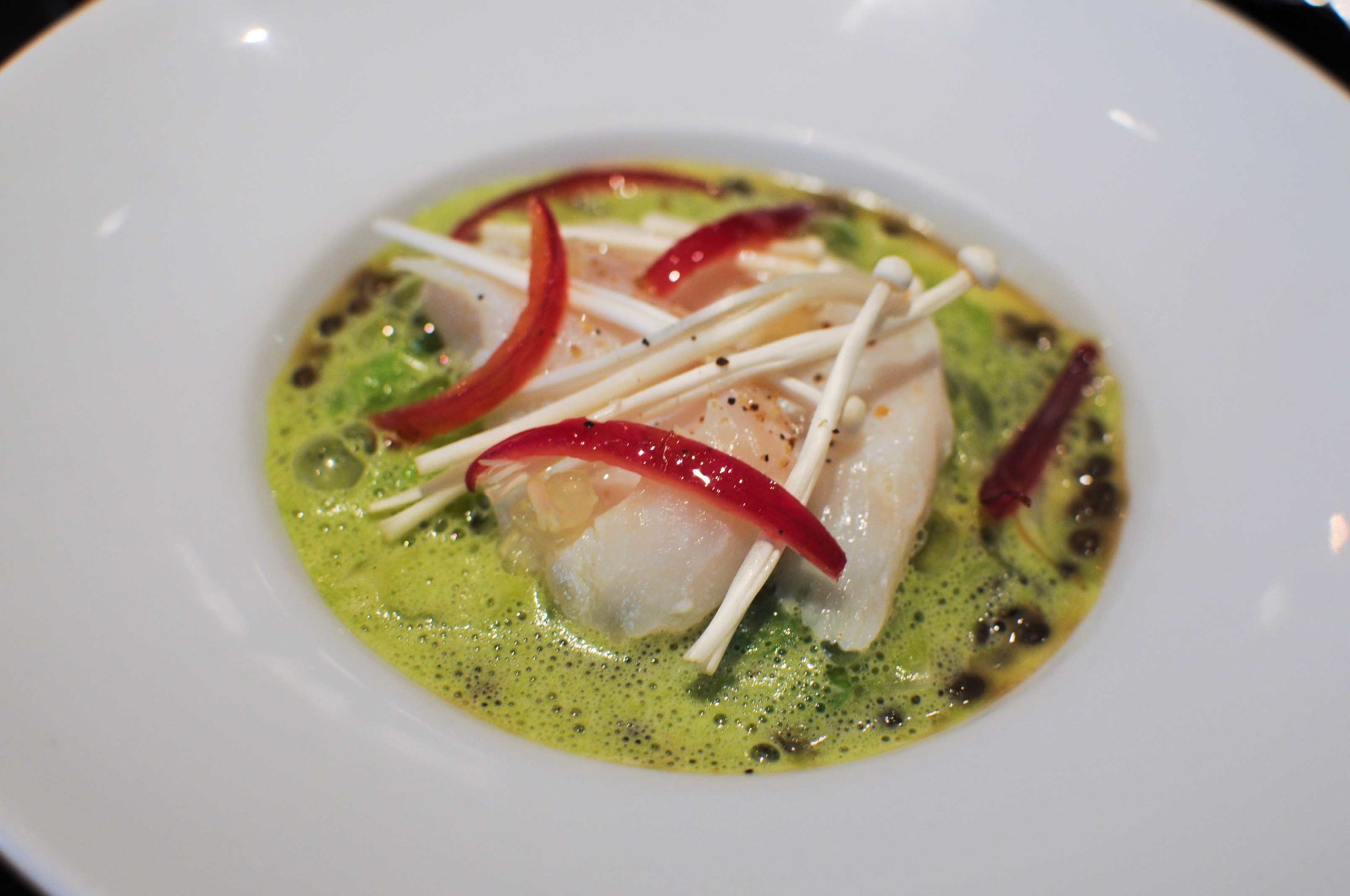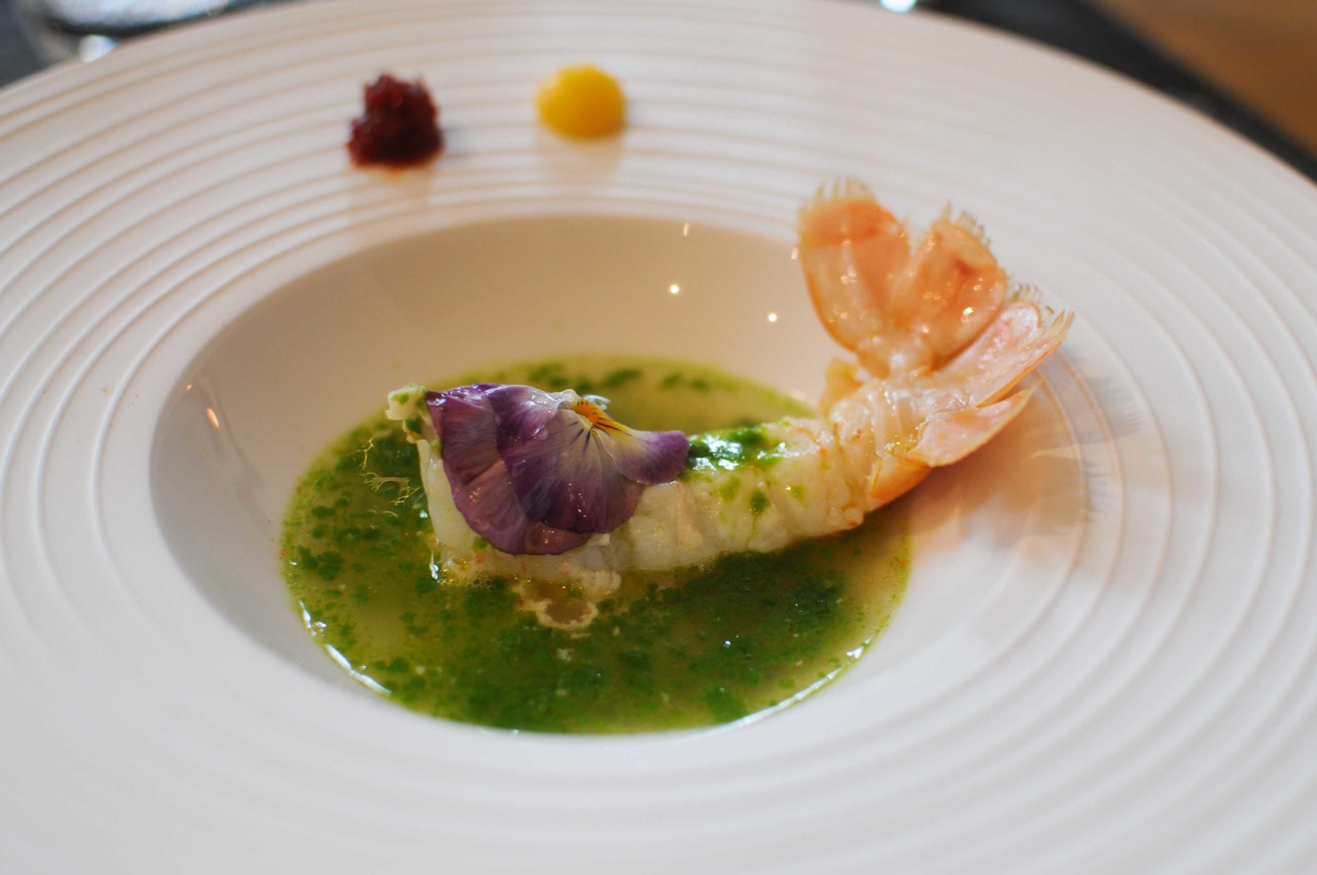 Langoustine, beurre gingembre et ciboulette, bouillon à la citronnelle