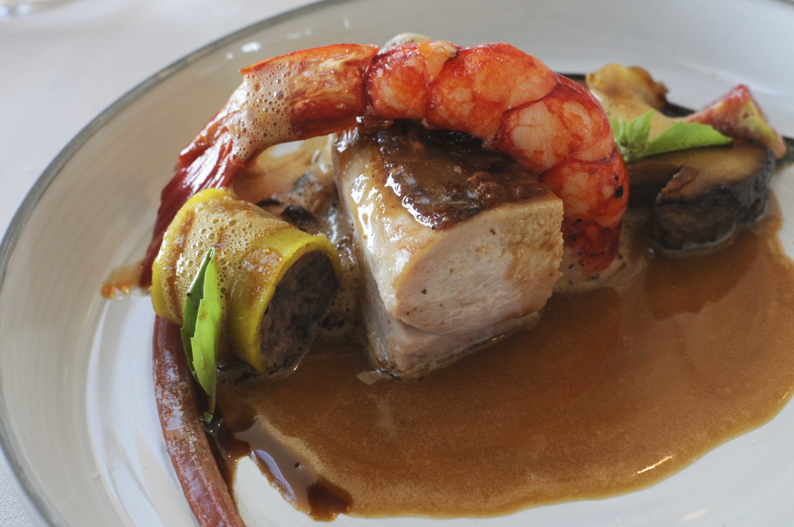 Carabineros et pintade de chez Alice, cannelloni de ses cuisses confites
