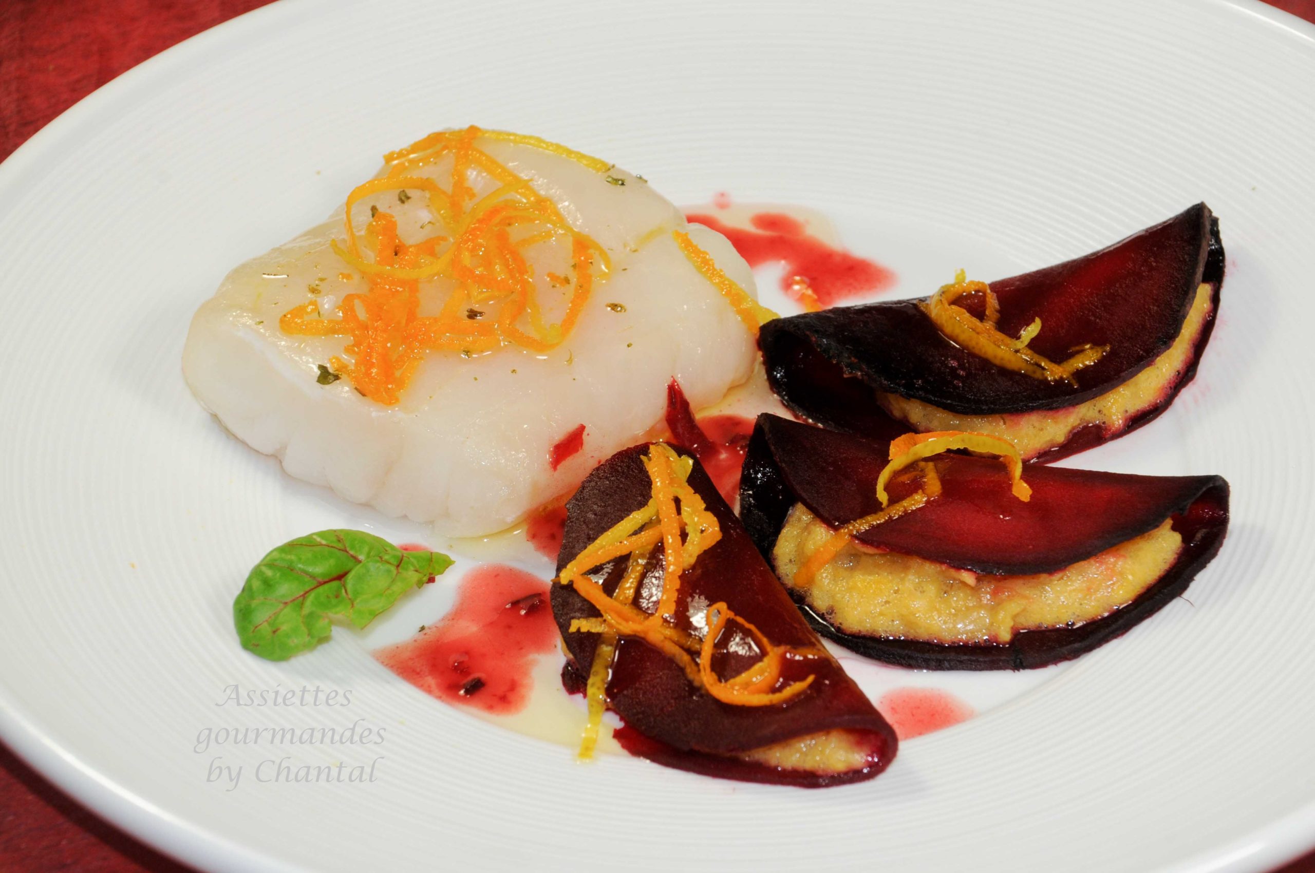 Dos de cabillaud, ravioles de betterave au sabayon d’oignon, une adaptation d’Eric Fréchon