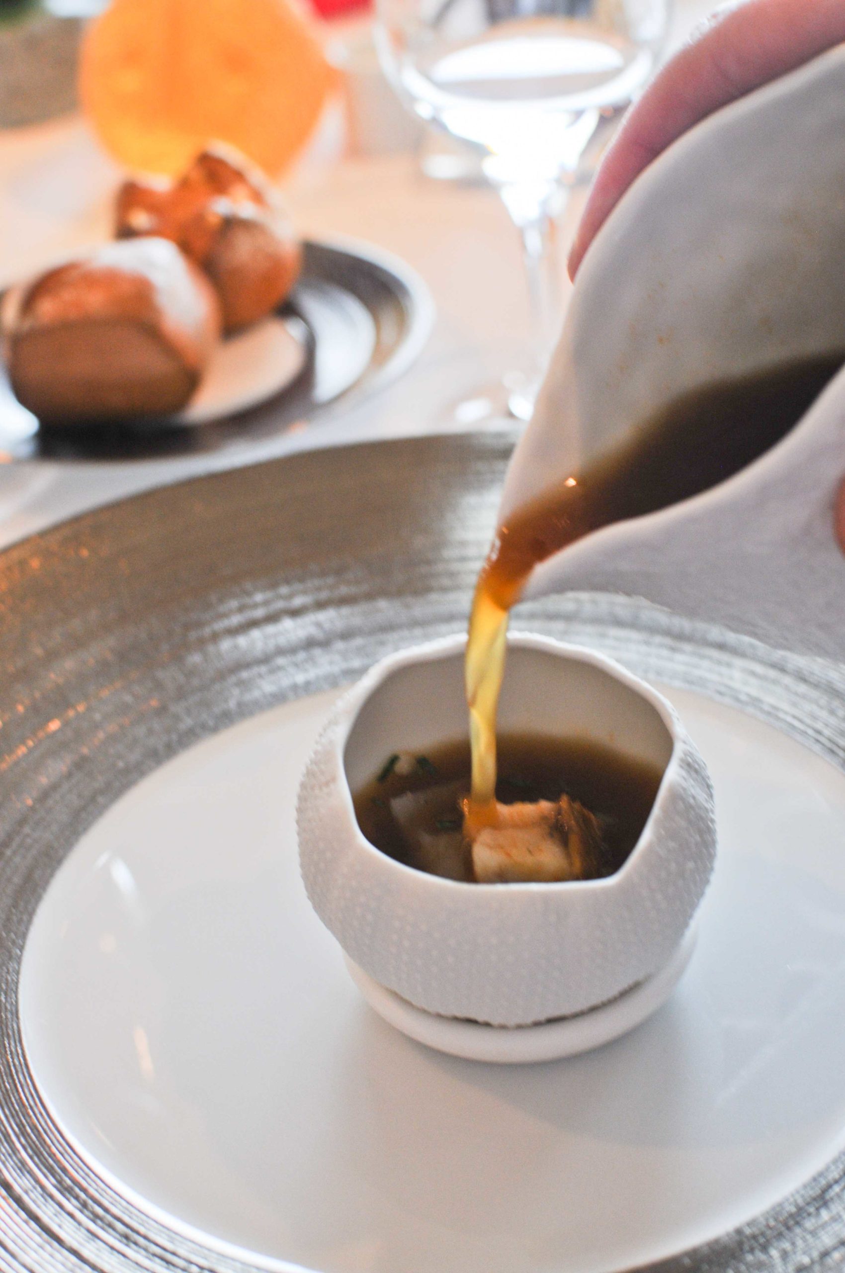 Clarification de homard, rouget barbet, langoustine et langues d’oursins