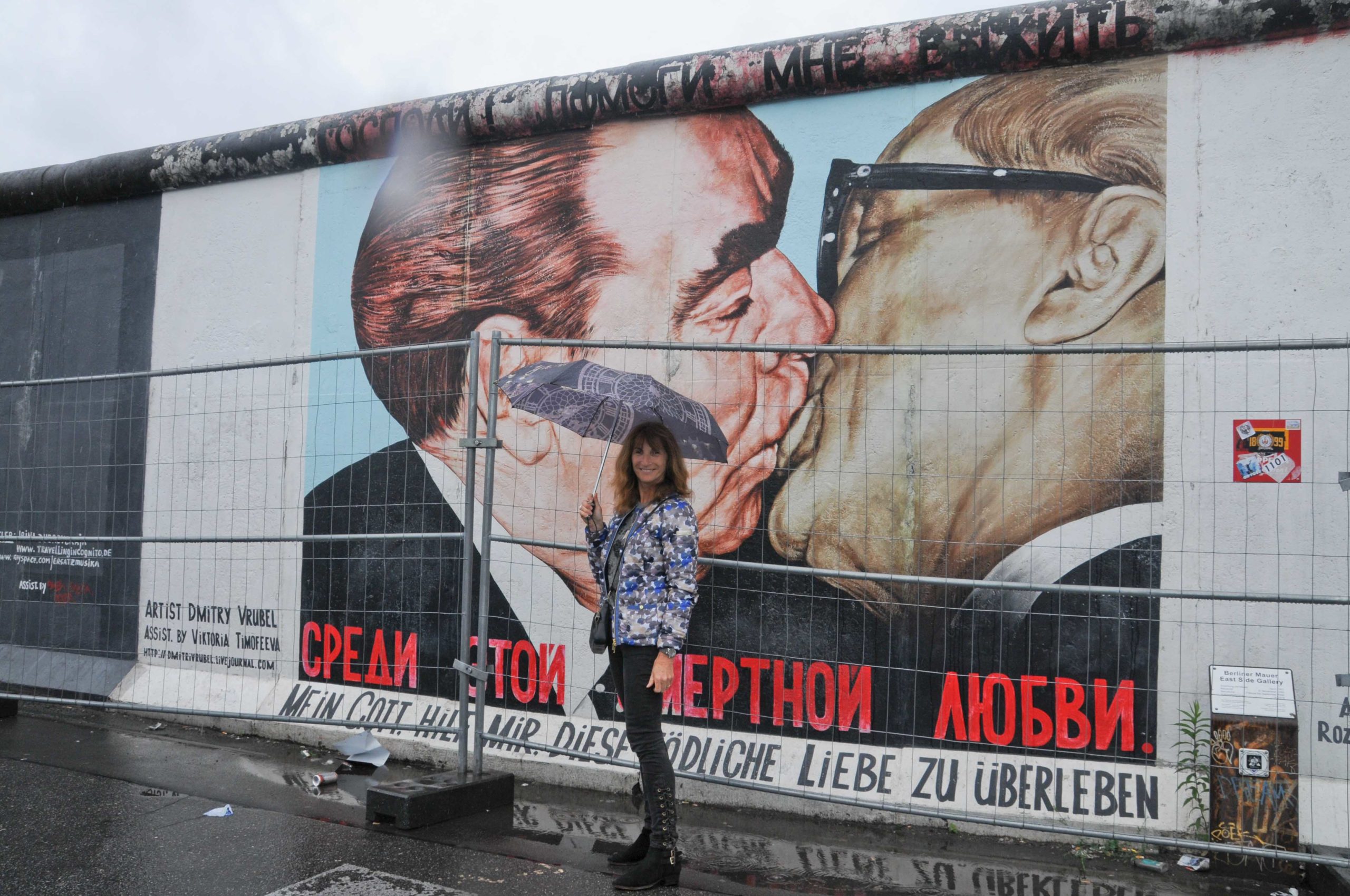 La première chose que l’on désire voir en arrivant à Berlin, c’est le Mur, ce Mur historique érigé en 1961 pour mieux diviser l’Allemagne de l’Est et l’Allemagne de l’Ouest… il n’en reste aujourd’hui que quelques vestiges depuis qu’il est tombé le 9 novembre 1989 permettant aux allemands de l’Est de passer à l’ouest, et marquant ainsi la chute du rideau de fer. Le reste le plus connu du Mur est East Side Gallery ; il mesure 1.3 km et a été peint par 118 artistes du monde entier :