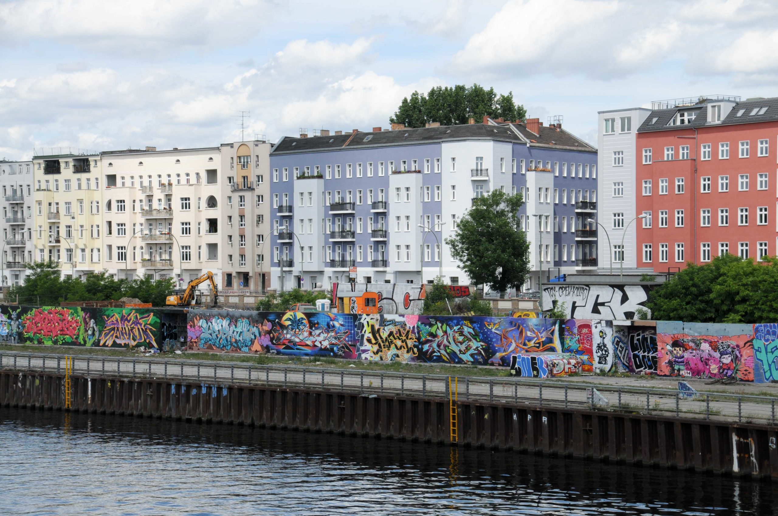 Un peu plus à l’Est, d’autres parties du Mur subsistent au bord de la Spree, rivière qui traverse Berlin,… là aussi le Street Art est omniprésent: