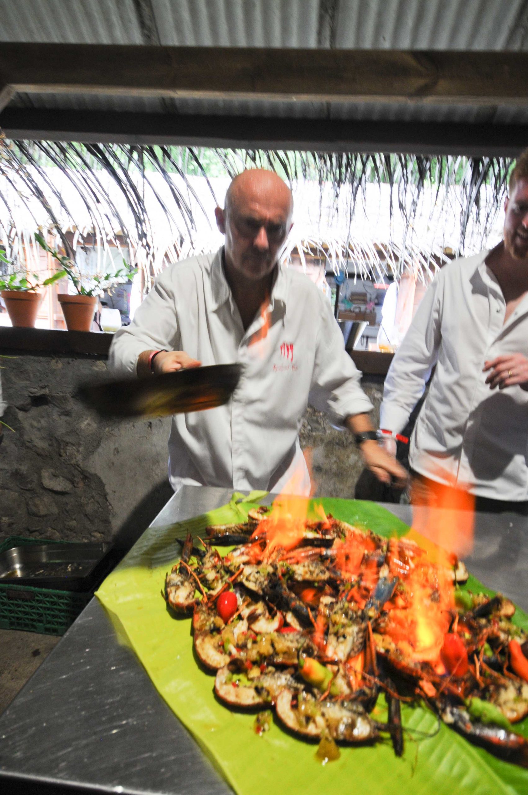 Pour se remettre de nos émotions, un petit verre de rhum (^_^), et on revient voir ce que nous préparent nos Chefs pour le Déjeuner qui a lieu au restaurant situé au sein même de l’Habitation :