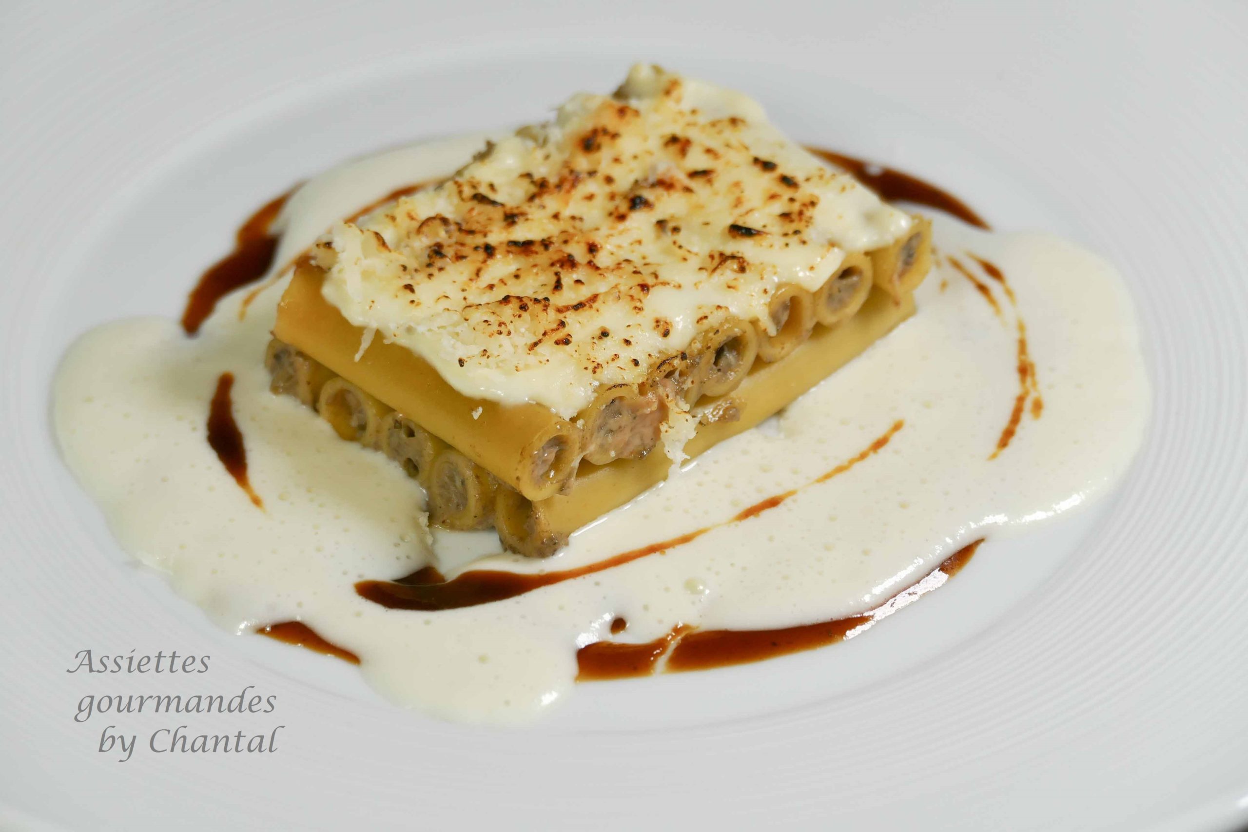 Alors aujourd’hui, dans le même esprit, voici des pâtes Zitone (gros macaronis) farcies foie gras/truffe avec une émulsion céleri. Si vous avez de la truffe fraîche, c’est le moment d’en mettre quelques lamelles sur ce plat, mais on ne mange pas de la truffe tous les jours 😉