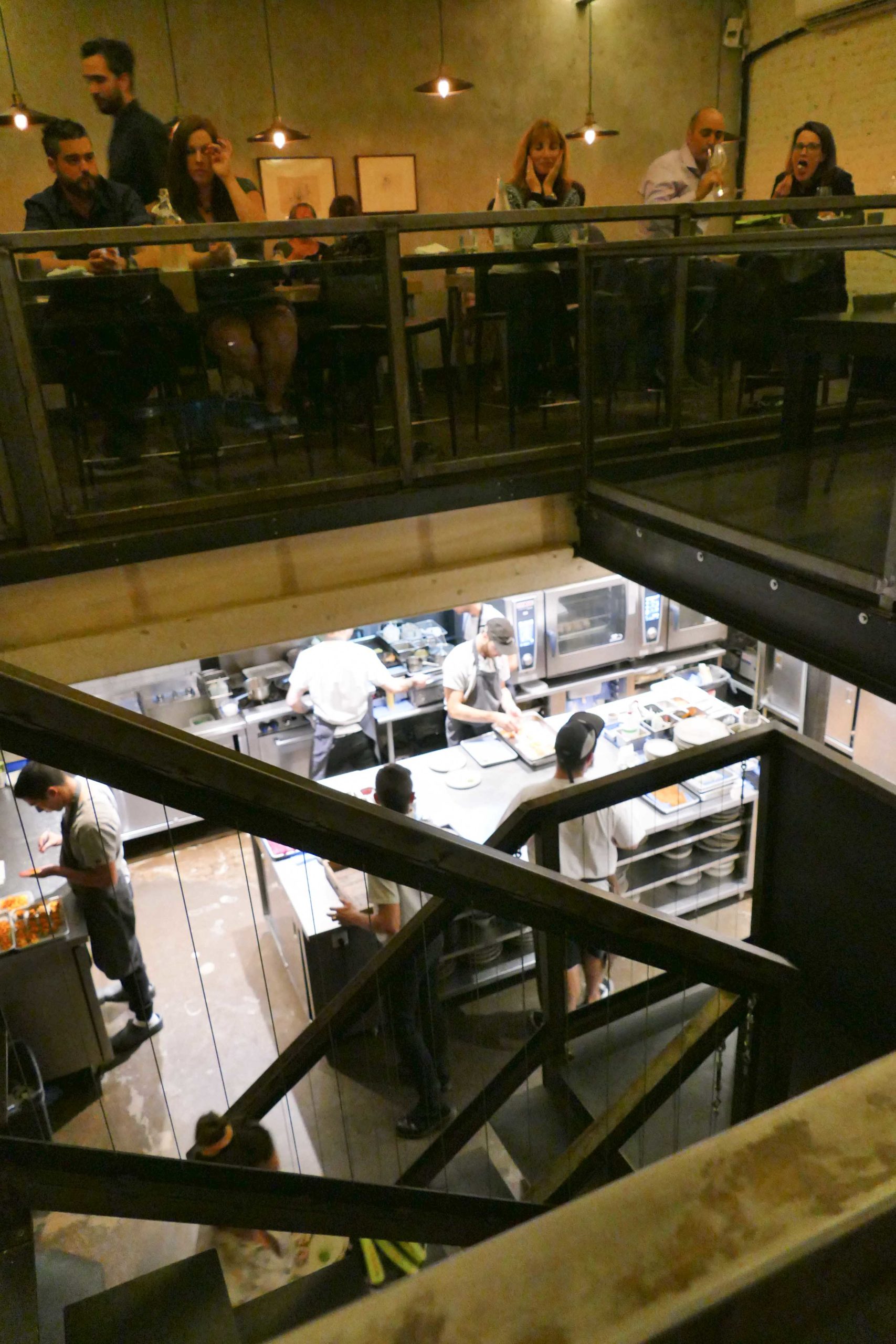 Le Mousso est un restaurant gastronomique atypique : situé dans une ancienne imprimerie sur la rue Ontario Est, aucun signe ostentatoire dans la rue, déco sobre faite de matériaux industriels style acier brossé et bois, grandes tables à partager ou bar surplombant la cuisine ouverte en sous sol, musique branchée hip- hop/rap… rien à voir avec les standards habituels.